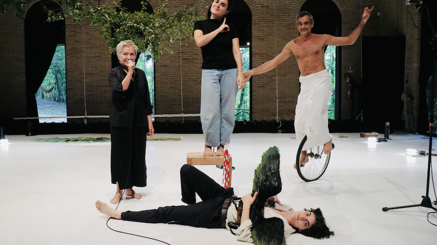 Il debutto cesenate dello spettacolo (prodotto con ERT / Teatro Nazionale in collaborazione con L’arboreto – Teatro Dimora | Centro di Residenza Emilia-Romagna) è il compimento di un tragitto a tappe. Dopo il video Come cani, come angeli – primo esito del percorso, con versi di Ida Travi e con Calderoni e Guerzoni tra i protagonisti, tra l’autunno 2024 e la primavera 2025 la compagnia ha costruito una mappa di luoghi e suoni con Lemmo, Michele Bertoni e Pier Paolo Zimmermann, “indagando il paesaggio come teatro e il teatro come paesaggio”. Nell’agosto 2025, la residenza La scuola grande del bosco a L’arboreto – Teatro Dimora di Mondaino ha aperto per la prima volta il cantiere al pubblico, preludio alla prima al Bonci. Intorno allo spettacolo prende ora vita un progetto speciale dedicato alla città che semina altre occasioni d’incontro: prove aperte con ingressi gratuiti su prenotazione (11-12 ottobre); la proiezione del video Come cani come angeli alla Sala Cinema della Biblioteca Malatestiana con introduzione di Cesare Ronconi sul percorso triennale (18 ottobre).