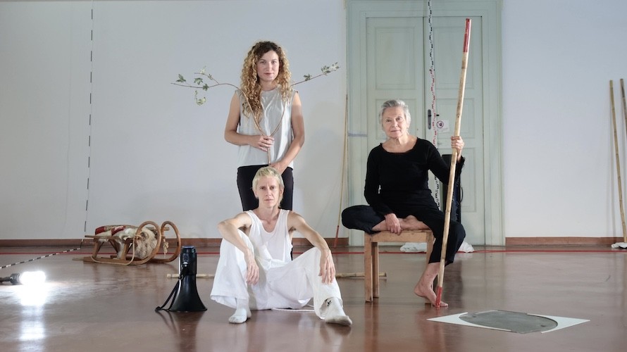 Ogni sera lo spettacolo inizia fuori, con un prologo dal balcone di Gualtieri che pronuncerà “le parole che in questo momento vorremmo dire alla nostra città e al mondo”, per poi abitare sala e palcoscenico grazie a un dispositivo in cui suono verso e immagine s’intrecciano e in cui immagini sonore raccolte in mesi di esplorazioni – Camaldoli, le gravine di Otranto, l’Adriatico – affiorano come memoria in atto.