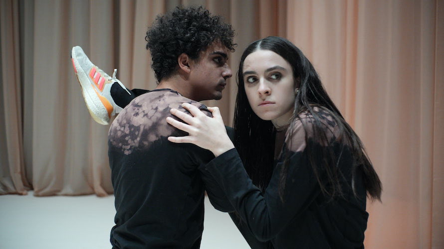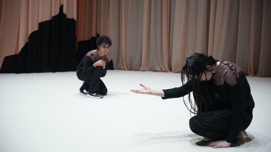L’opera di Castellucci – drammaturga, coreografa, didatta, cofondatrice della Societas Raffaello Sanzio – nasce come una danza per la Compagnia Mòra e si appoggia a un dialogo da lei scritto tra due eremiti cristiani, Antonio d’Egitto e Ilarione di Gaza: un maestro e un giovane discepolo nel deserto della Tebaide, dove “non c’è niente da vedere e niente si muove: tutto è Passato” e l’unica novità possibile è quella che ciascuno sa trovare in sé. Una dichiarazione d’intenti che l’autrice formula con nettezza: “L’istinto a creare qualcosa che non c’è rivela il bisogno di rappresentare il mondo, e non soltanto di utilizzarlo”. Come sempre nei lavori di Castellucci, già Leone d’Argento dalla Biennale Danza di Venezia (nel 2020) la parola non illustra il movimento, lo misura. La drammaturgia è concepita infatti in forma ritmica e i danzatori avanzano “battuta dopo battuta” dentro un habitat sonoro che rende udibile il pensiero.