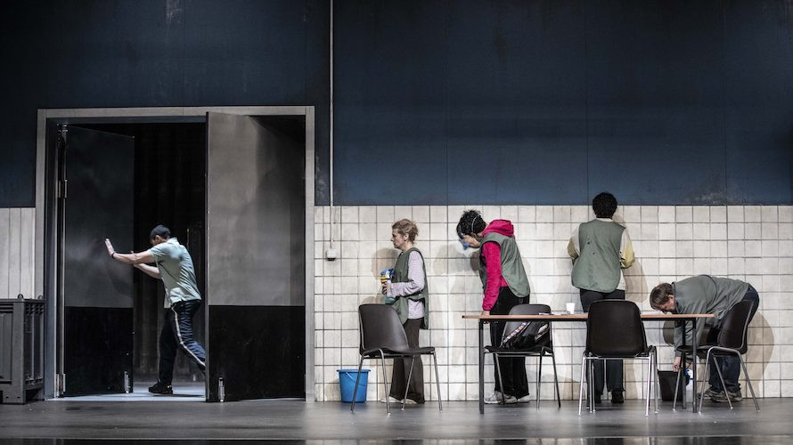 Cinque addetti alle pulizie in una macelleria industriale. Turni infiniti, pause cronometrate ogni quattro ore, straordinari sottopagati, altri lavori da rincorrere di giorno, nessuna tutela. Il 30 e 31 ottobre al Teatro Due di Parma arriva Beyond Caring, spettacolo scritto e diretto da Alexander Zeldin che nel 2014 portò il regista britannico (già assistente di Peter Brook) alla ribalta nazionale e internazionale. Il lavoro ha debuttato infatti a Londra un decennio fa, ottenendo un riconoscimento immediato per la lucidità dello sguardo ed è stato il primo pannello di una trilogia sulle disuguaglianze che Zeldin ha sviluppato negli anni successivi con Love (2016) e Hope, Faith and Charity (2019). Dopo essersi trasferito a Parigi, il regista ha deciso di riallestire Beyond Caring in francese, con il titolo Prendre soin, dopo aver fatto la stessa cosa con attori tedeschi, proprio perché il tema – la vita dei lavoratori poveri, iper-flessibili e senza diritti – è tutt’altro che superato. La versione che arriva a Parma è quella francese, con soprattitoli italiani.